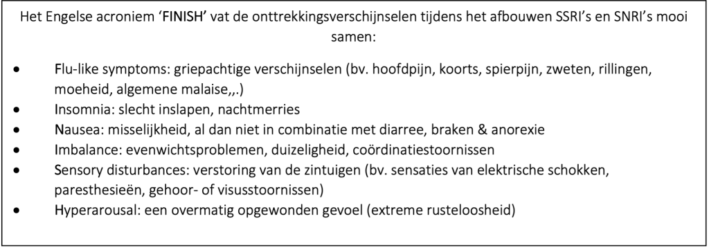 Het is in de apotheek dus heel belangrijk om bij een eerste en tweede uitgifte van een antidepressivum de patiënt goed voor te lichten en te motiveren om het geneesmiddel volgens voorschrift in te (blijven) nemen.
